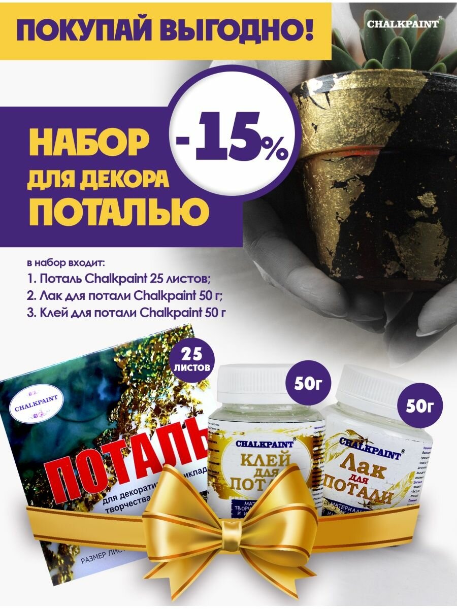Набор для декора Chalky Paint: поталь 25 листов, золотистая + клей 50 г + лак 50 г интересное: