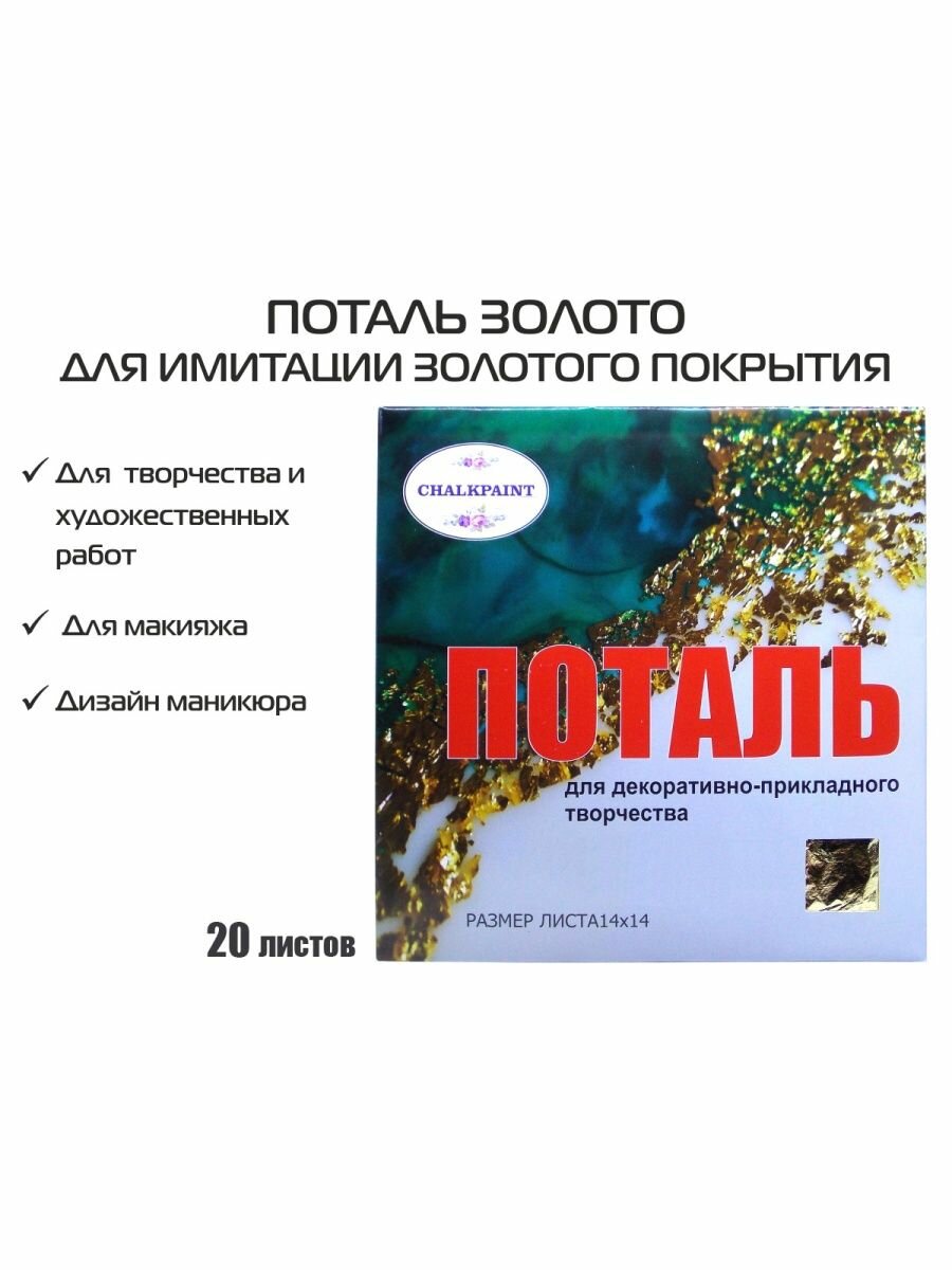 Набор для декора Chalky Paint: поталь 20 листов, золотистая + клей 50 г + лак 50 г интересное: