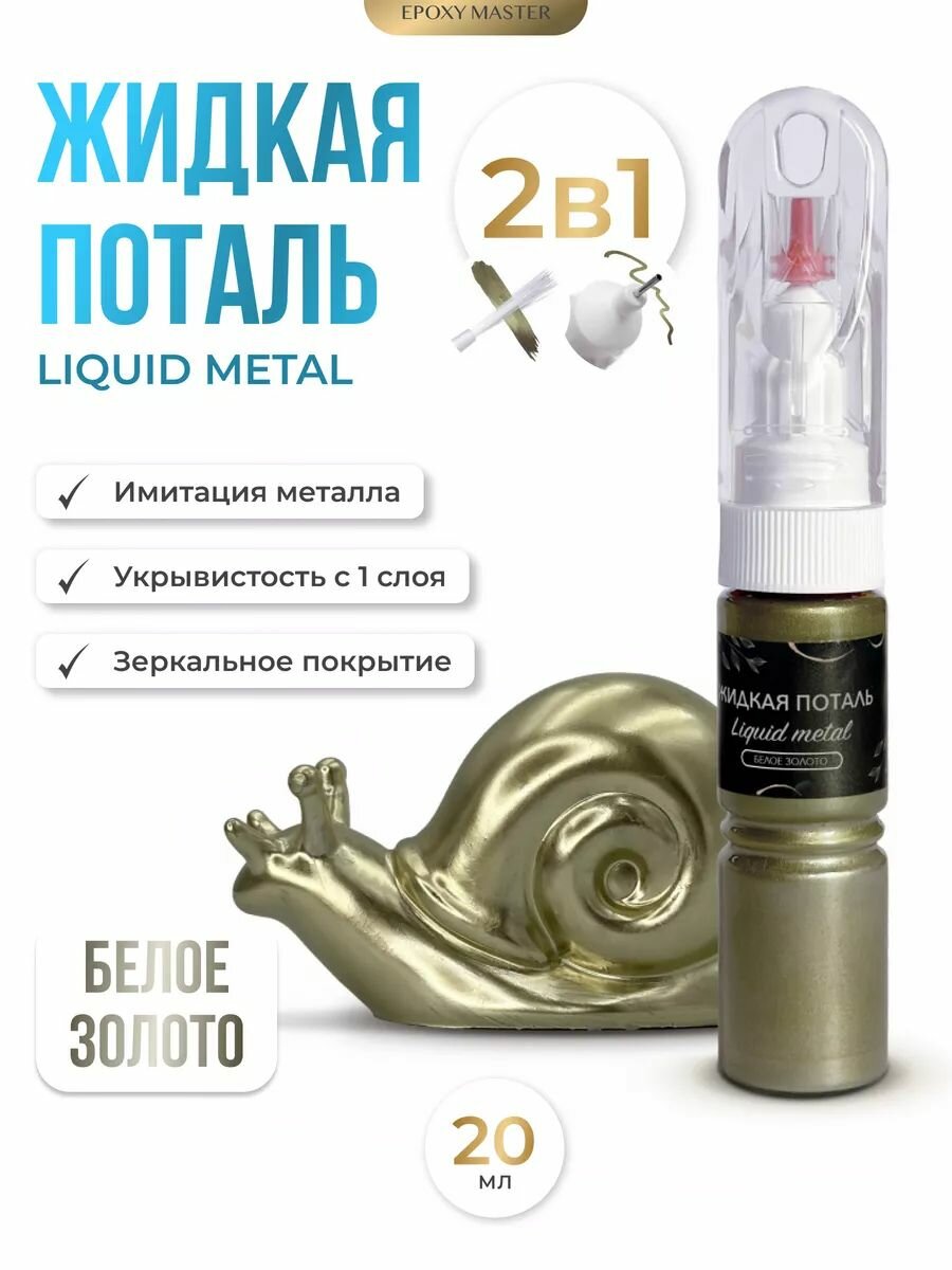 Жидкая поталь Liquid Metal "Белое золото" 2в1 EPOXYMASTER, 20мл интересное: