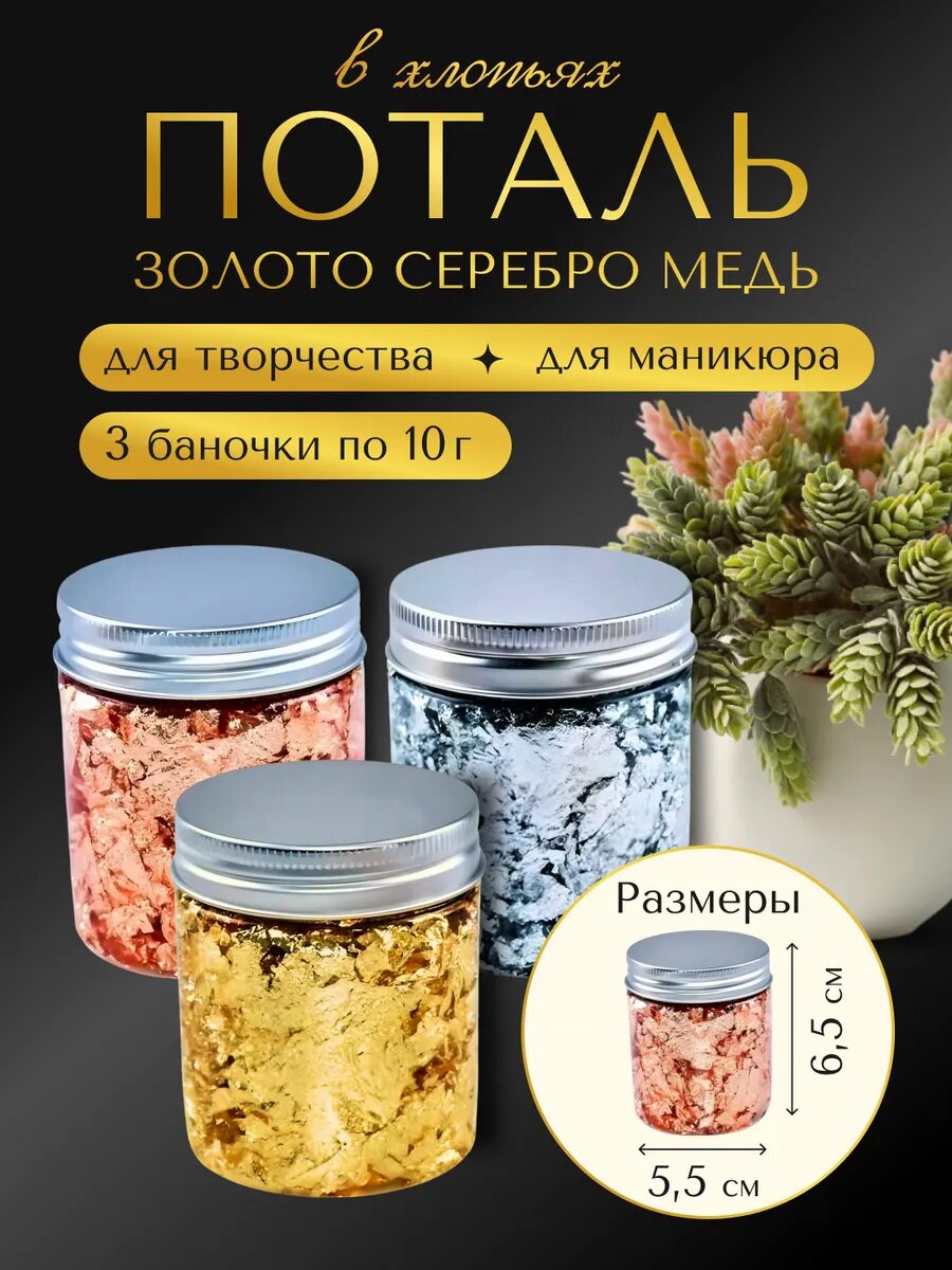 Поталь в хлопьях набор золото/серебро/медь по 10 г интересное: