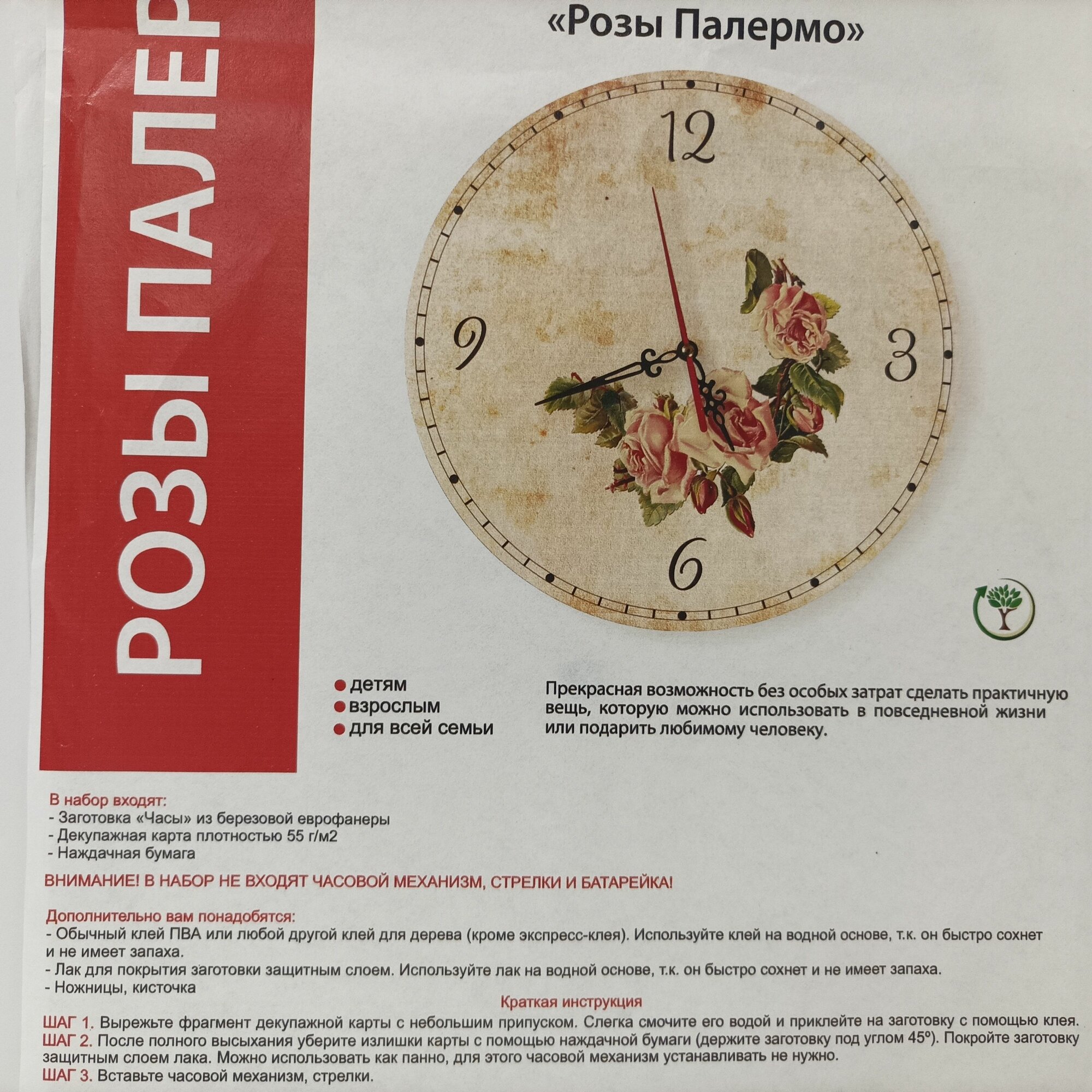 Набор для творчества Часы-панно "Розы Палермо", фанера интересное:
