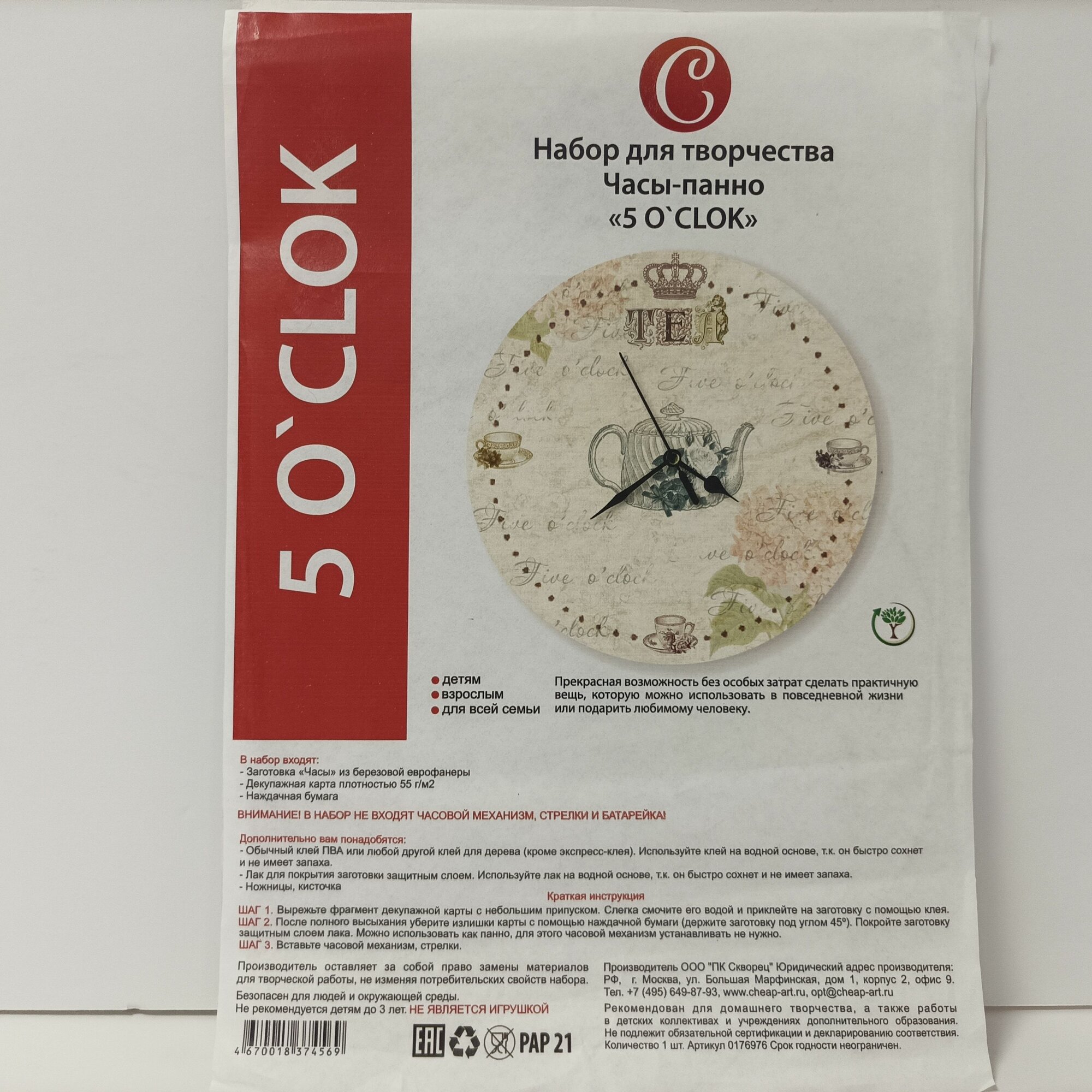 Купить Набор для творчества Часы-панно "5 O'CLOK", фанера