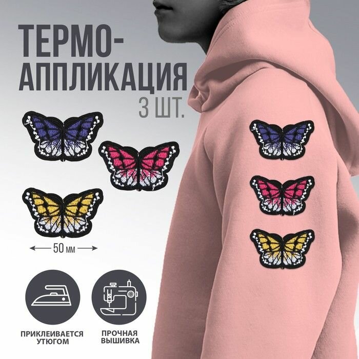 Купить Набор термоаппликаций "Бабочки", 3 шт.