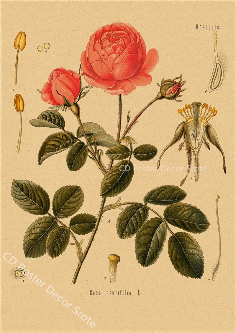 Плакат с ботаническими цветами А4/A3 крафт-бумага, 40, A3 16.5x11.8inch интересное: