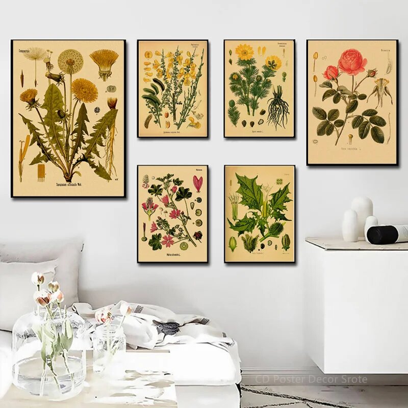 Купить Плакат с ботаническими цветами А4/A3 крафт-бумага, 40, A3 16.5x11.8inch