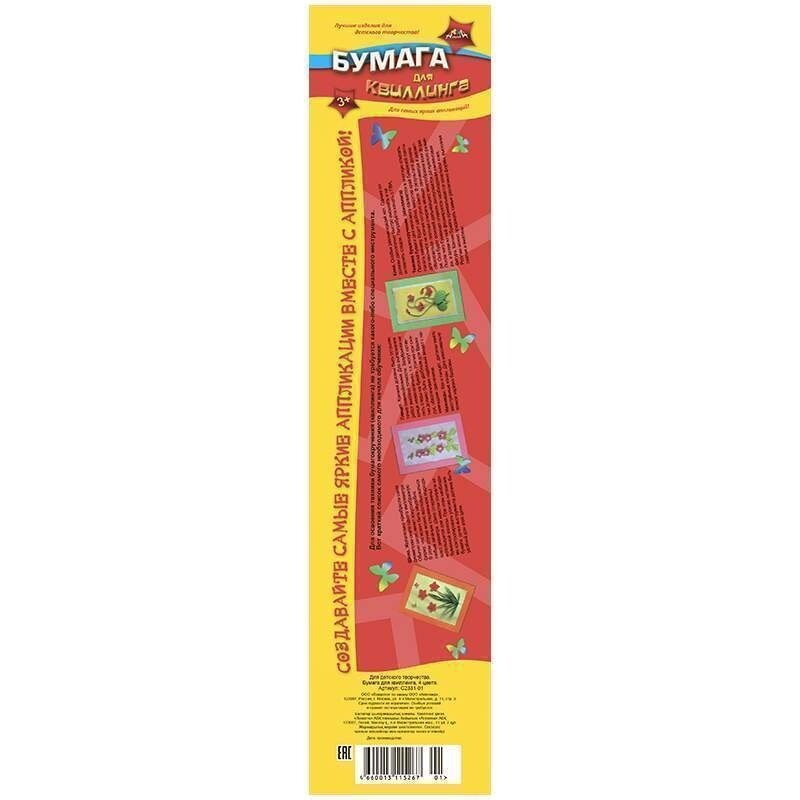 Бумага д/квиллинга апплика 4цв.200шт.9мм*300мм. п/бл. (С2331) интересное: