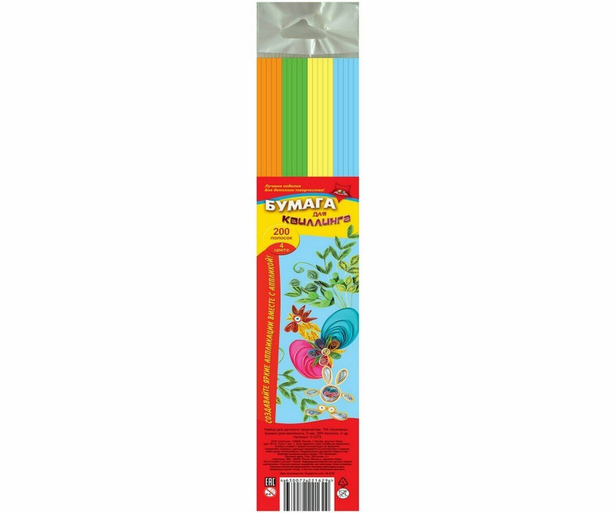 Купить Бумага для квиллинга Апплика, 4 цвета, 3мм, 200 полос, пакет, европодвес (С1273-01)