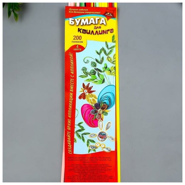 Бумага для квиллинга Апплика, 4 цвета, 3мм, 200 полос, пакет, европодвес (С1273-01) интересное: