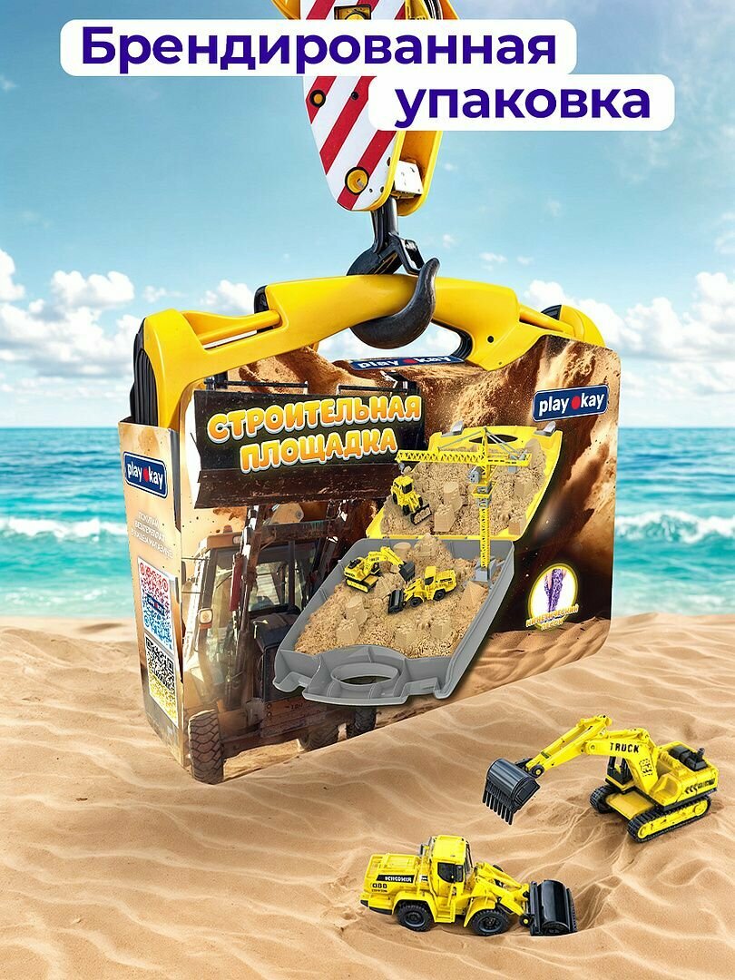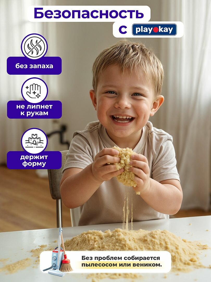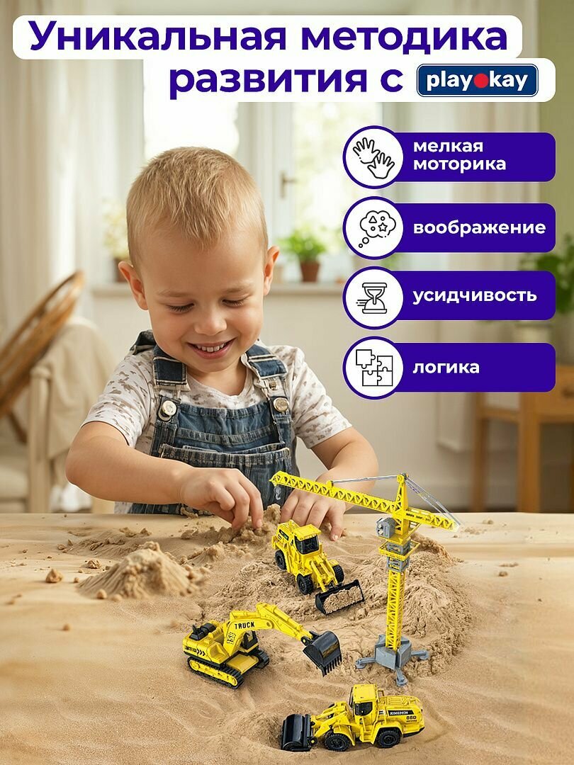 Кинетический песок с песочницей Play Okay с игрушками, 750 грамм, держит форму и не липнет к рукам, гипоаллергенный и без запаха интересное: