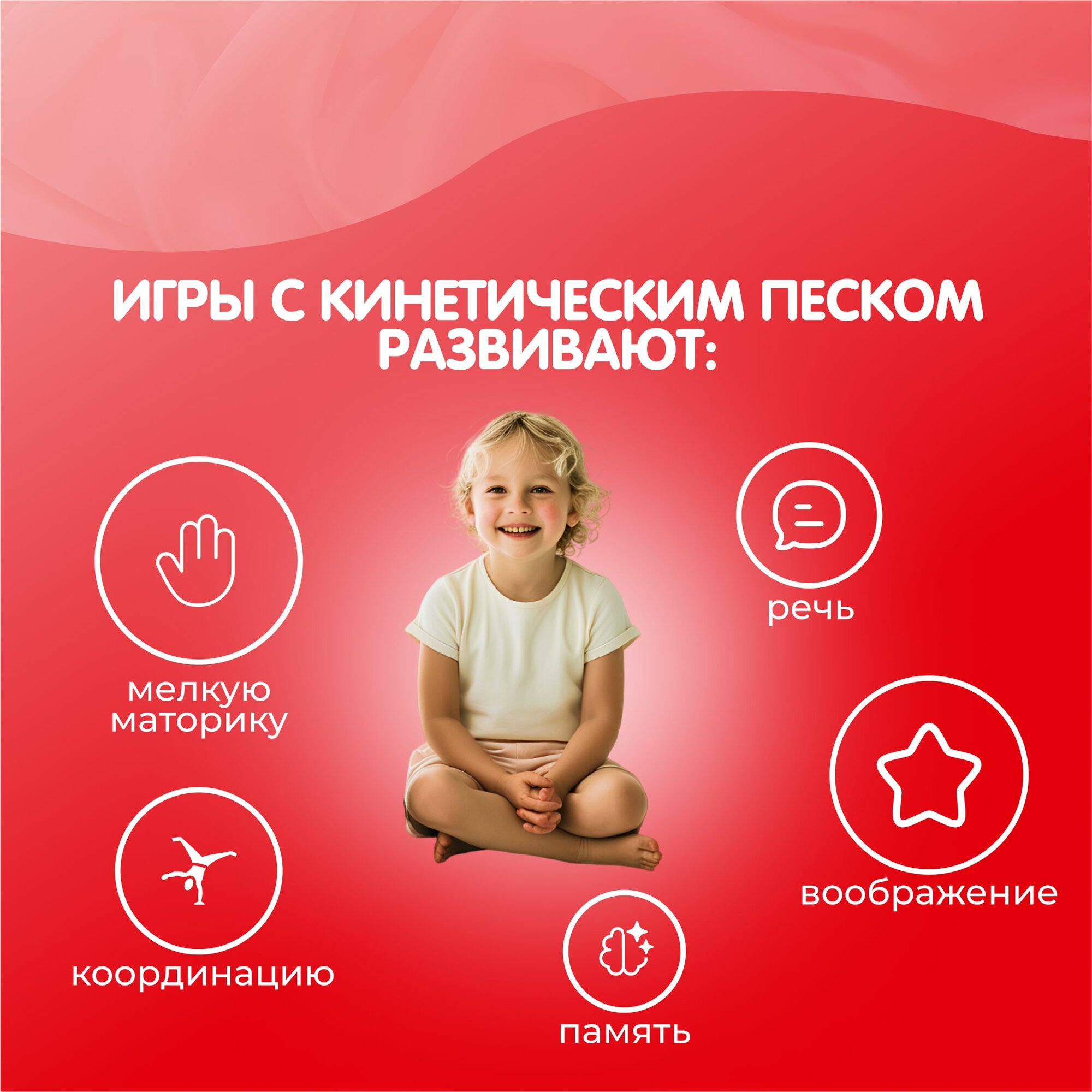 Кинетический песок 1,5 кг POYDA, натуральный песок для лепки, подарочный набор для детей