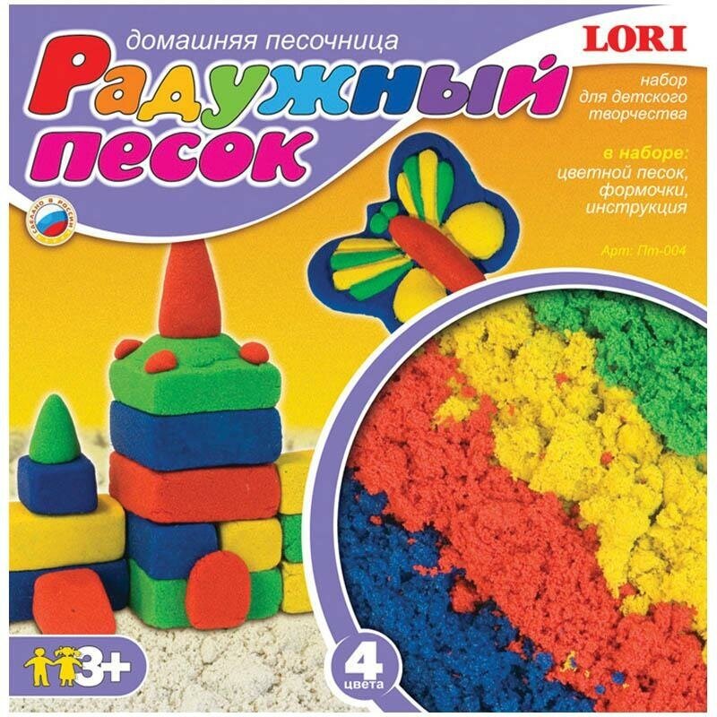 Канц_тов. д/лепки_песок д/лепки 4цв. lori "радужный песок", 2 формочки 913007 интересное: