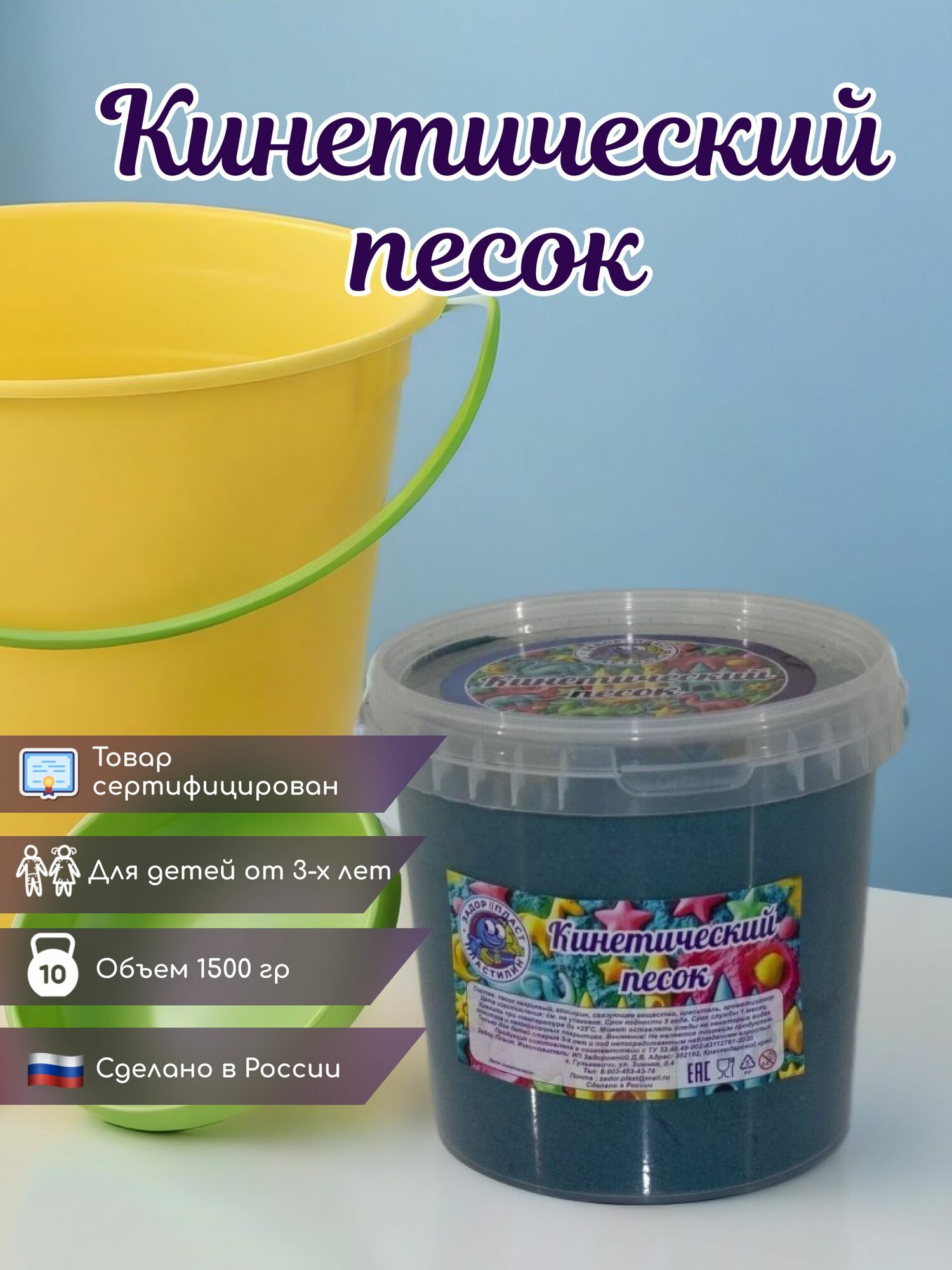 СохранитьКинетический песок синий, ведро 1.5 кг, ароматизированный, ЗадорПласт интересное: