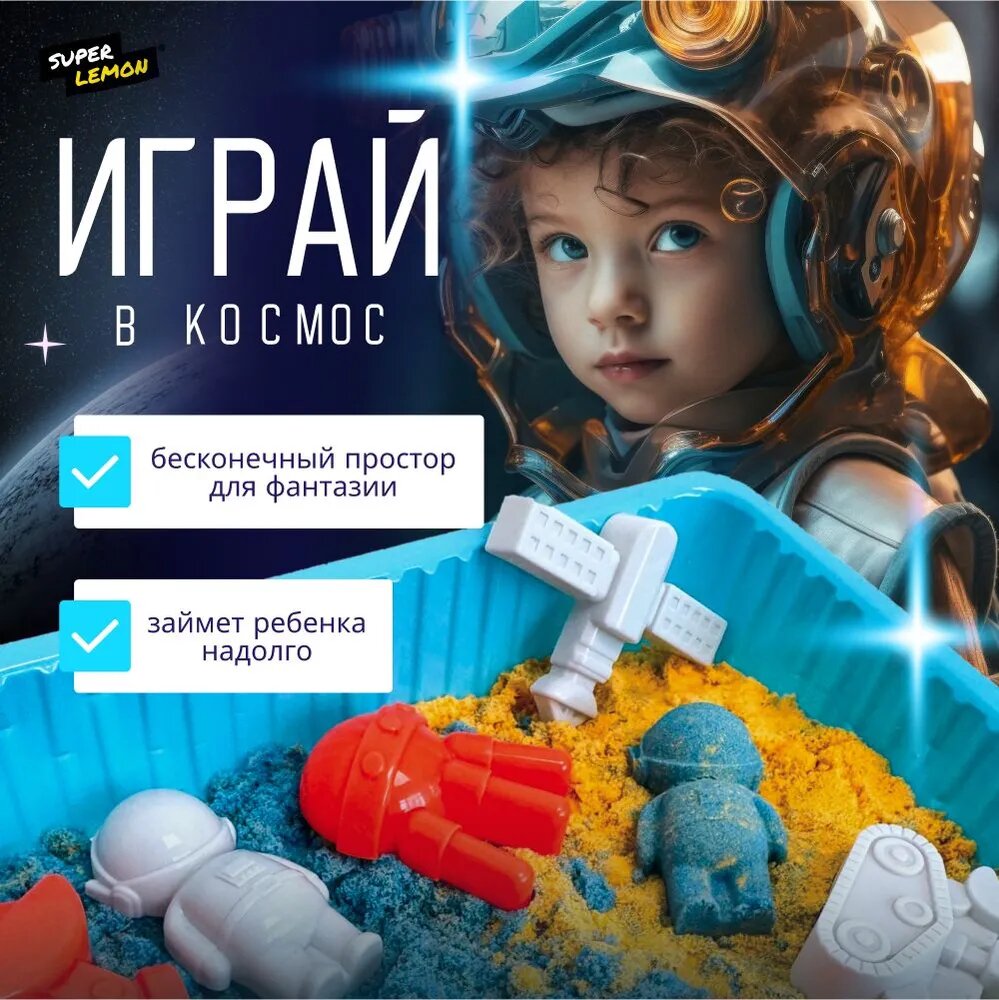 Песок кинетический с песочницей, космический набор с формочками интересное: