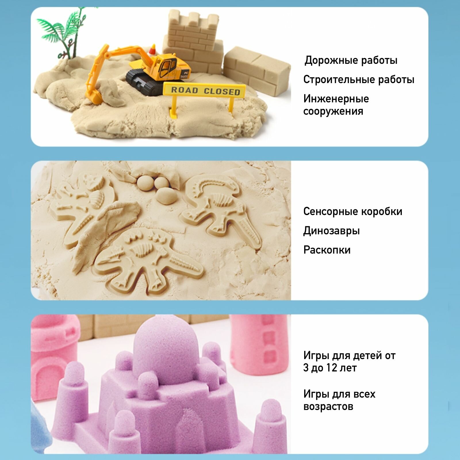 Большой набор Скульптурный песок (голубой 2 кг) с песочницей, формочками, лопатками в подарочном контейнере Coloyou интересное: