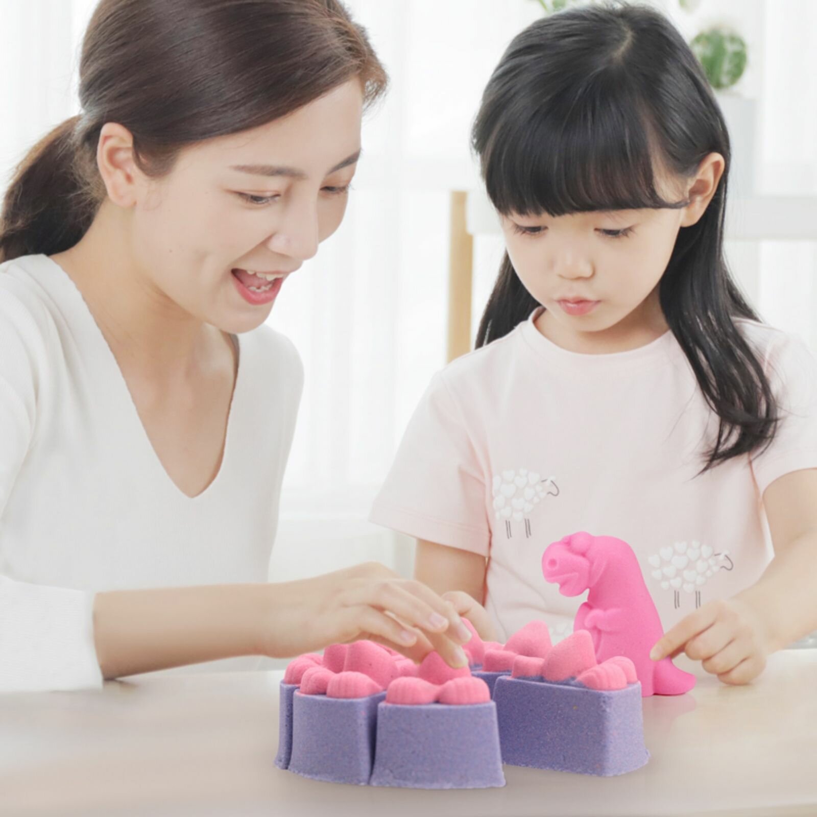 Большой набор Скульптурный песок (розовый 2 кг) с песочницей, формочками, лопатками в подарочном контейнере Coloyou