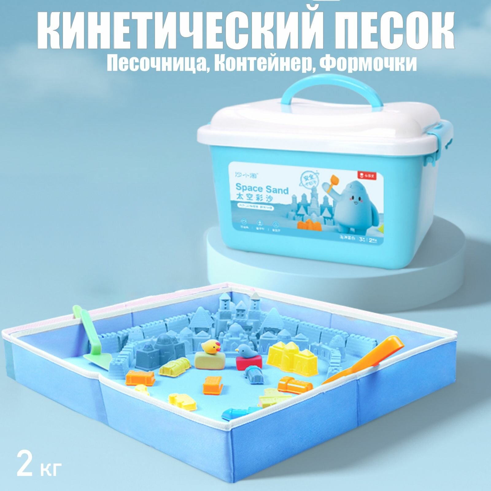Купить Большой набор Скульптурный песок (голубой 2 кг) с песочницей, формочками, лопатками в подарочном контейнере Coloyou