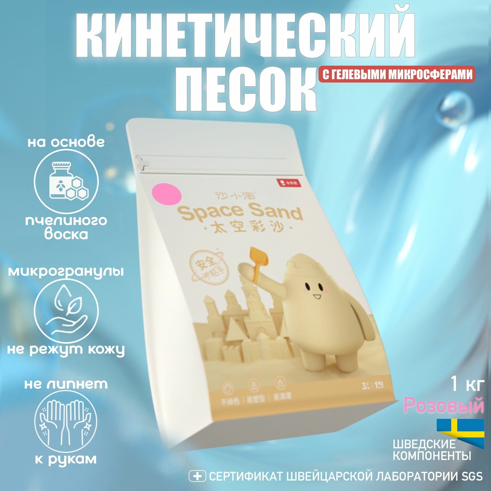 Скульптурный песок гидрогелевый на основе пчелиного воска Coloyou, 1 кг, розовый интересное:
