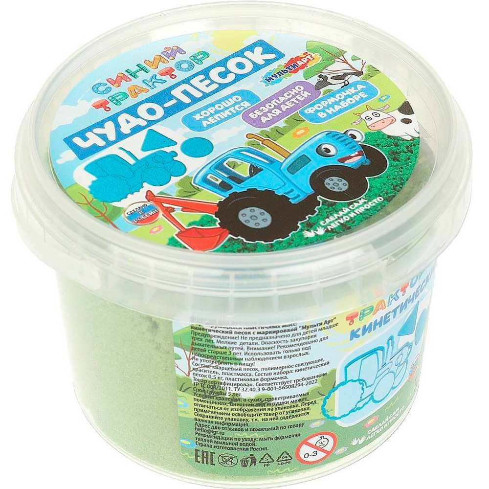 Набор для рисования песком мульти АРТ Кинетический песок синий трактор с формочкой в ведре, зелёный, интересное:
