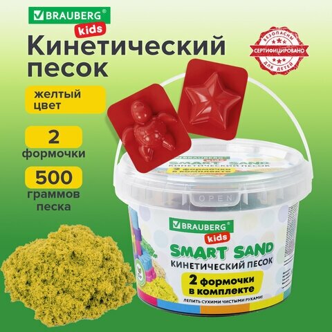 Купить Комплект 2 шт, Песок для лепки кинетический BRAUBERG KIDS, желтый, 500г, 2 формочки, ведерко, код 1С