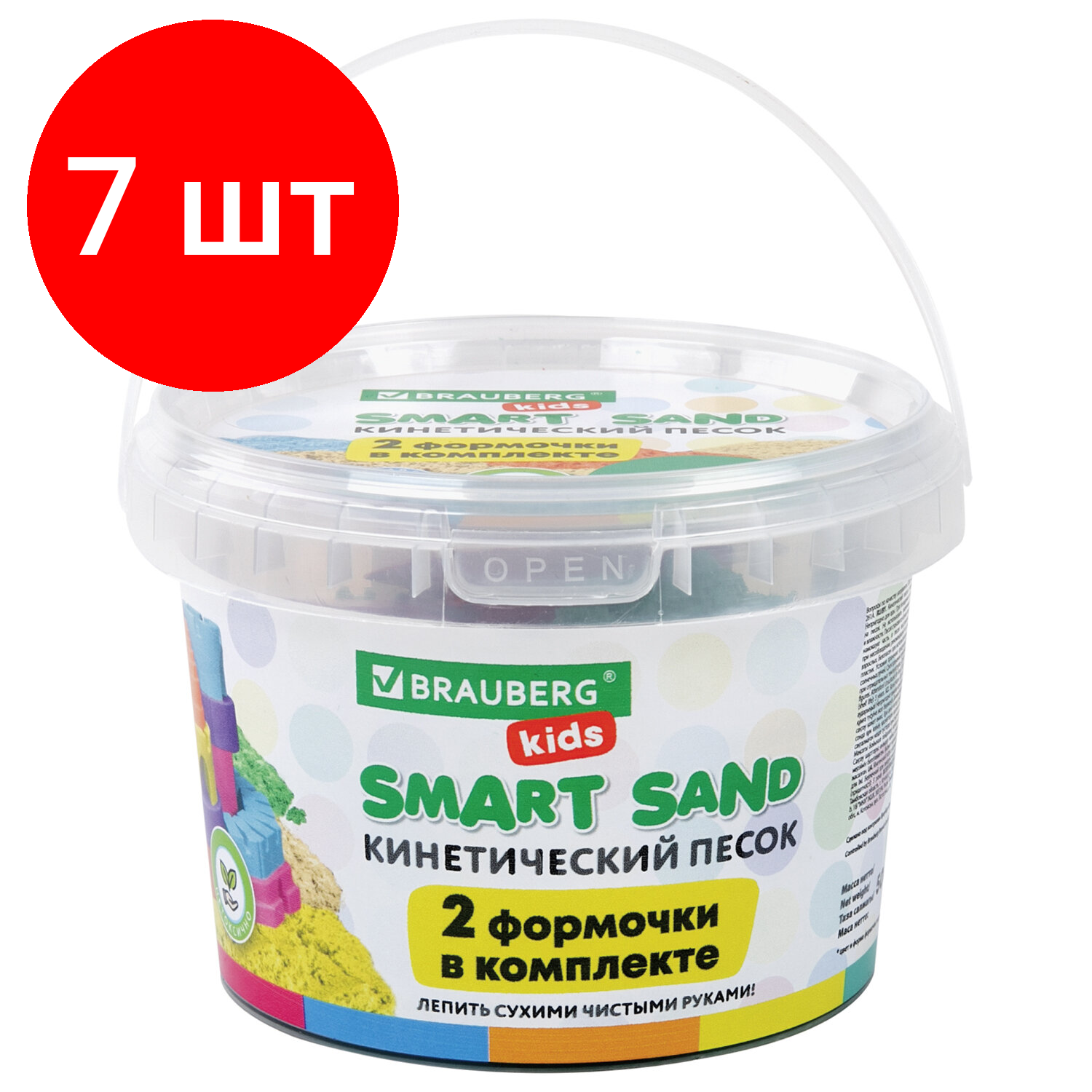 Купить Комплект 7 шт, Песок для лепки кинетический BRAUBERG KIDS, желтый, 500г, 2 формочки, ведерко, код 1С