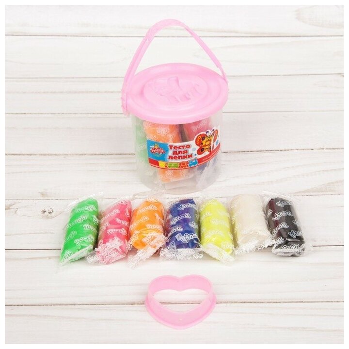 Тесто для лепки 7 цветов, 105 г + 1 формочка + крышка-формочка, микс интересное: