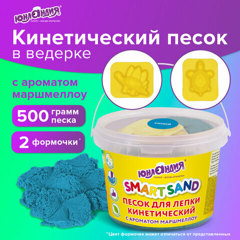 Комплект 8 шт, Песок для лепки кинетический юнландия, синий, 500 г, 2 формочки, ведерко, 104996 интересное: