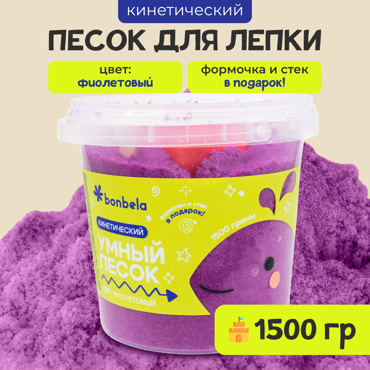 Кинетический песок для лепки bonbela 1,5 кг фиолетовый интересное: