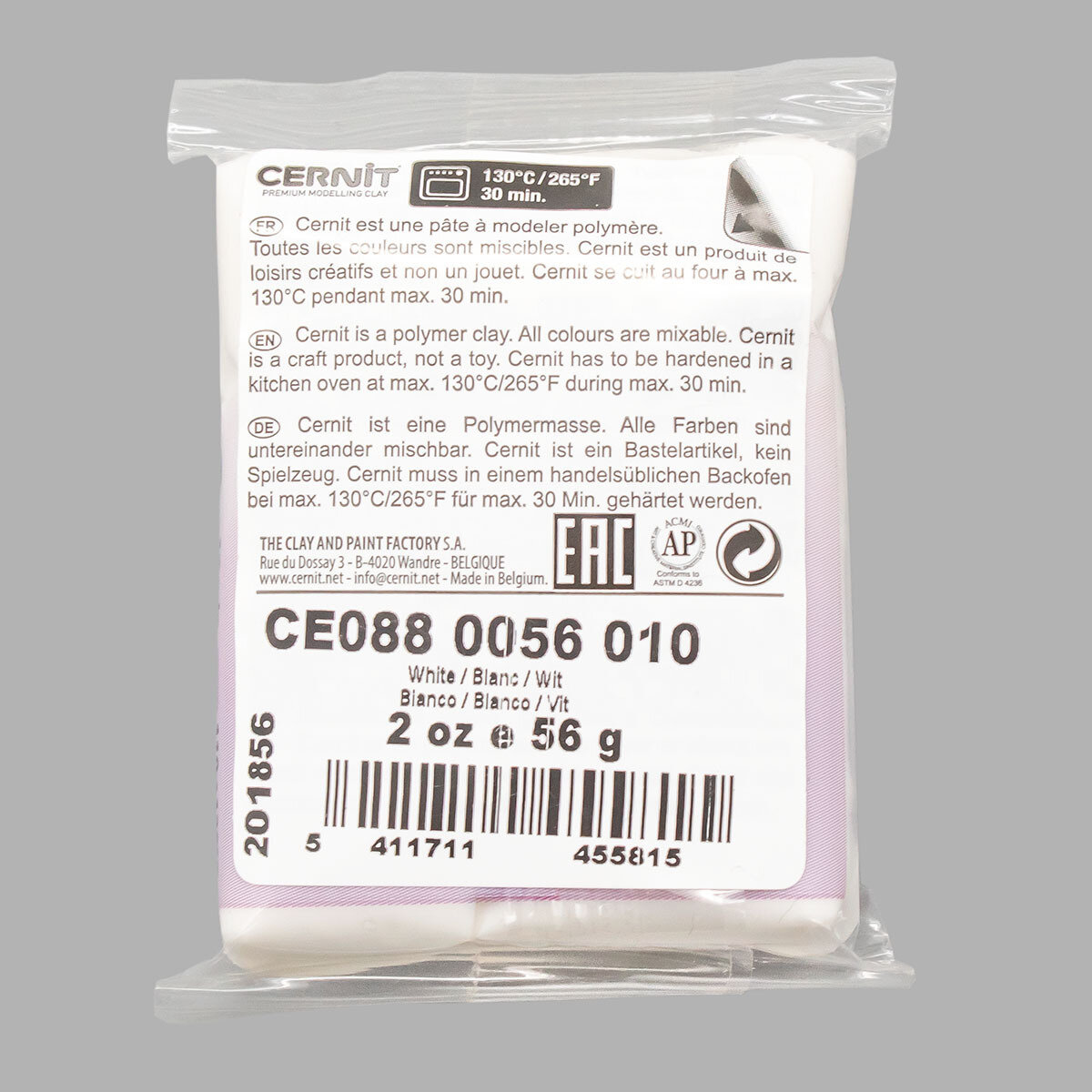 Полимерная глина запекаемая (пластика) Cernit № 1, 56-62 г (027 белая непрозрачная)