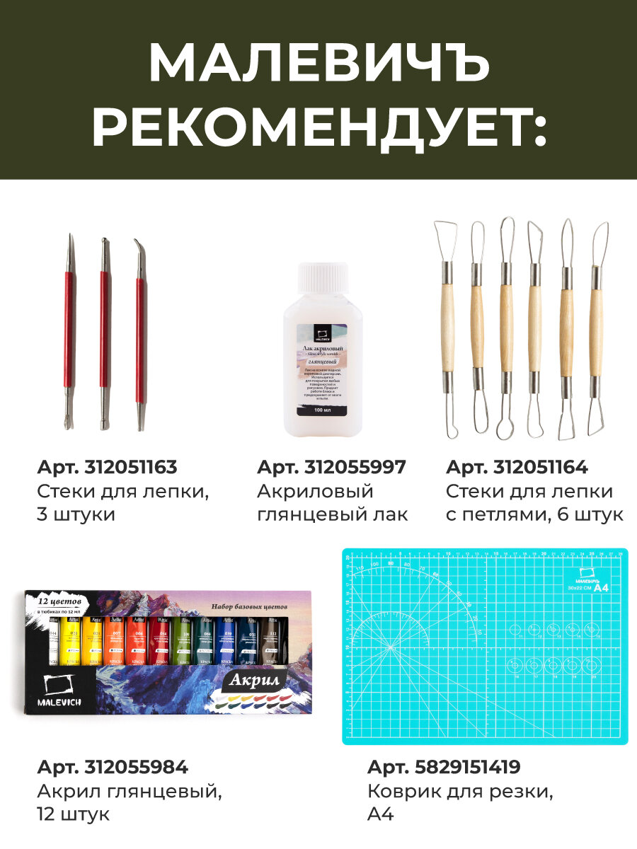 Глина для лепки Малевичъ, самозастывающая, красная, упаковка 500 гр интересное: