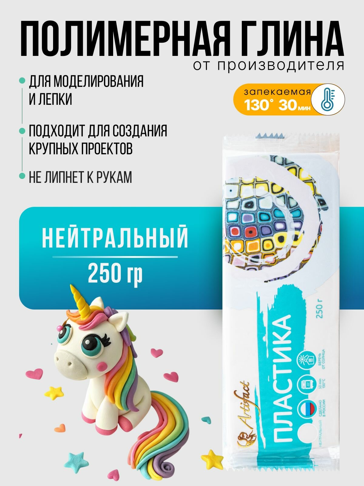 СохранитьПолимерная глина нейтральная, пластика запекаемая Артефакт, брус 250 г тон Т0001-1 интересное: