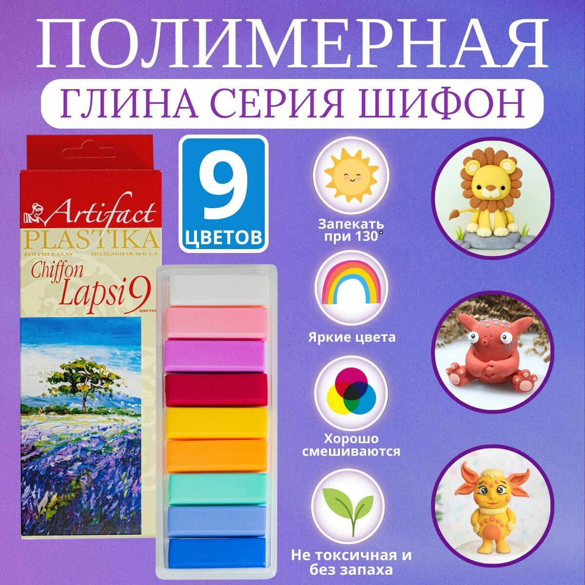 Купить Набор полимерной глины, пластика запекаемая Артефакт LAPSI Chiffon, 9 цветов, 180 г
