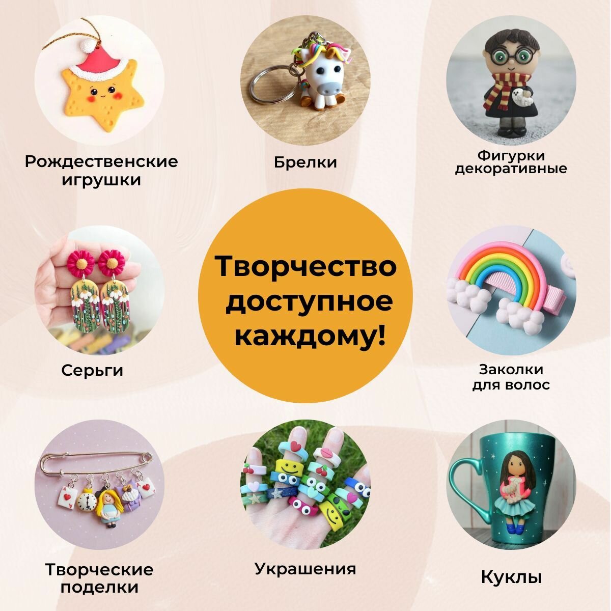 Пластика запекаемая, полимерная глина кукольная коллекция, 500 г