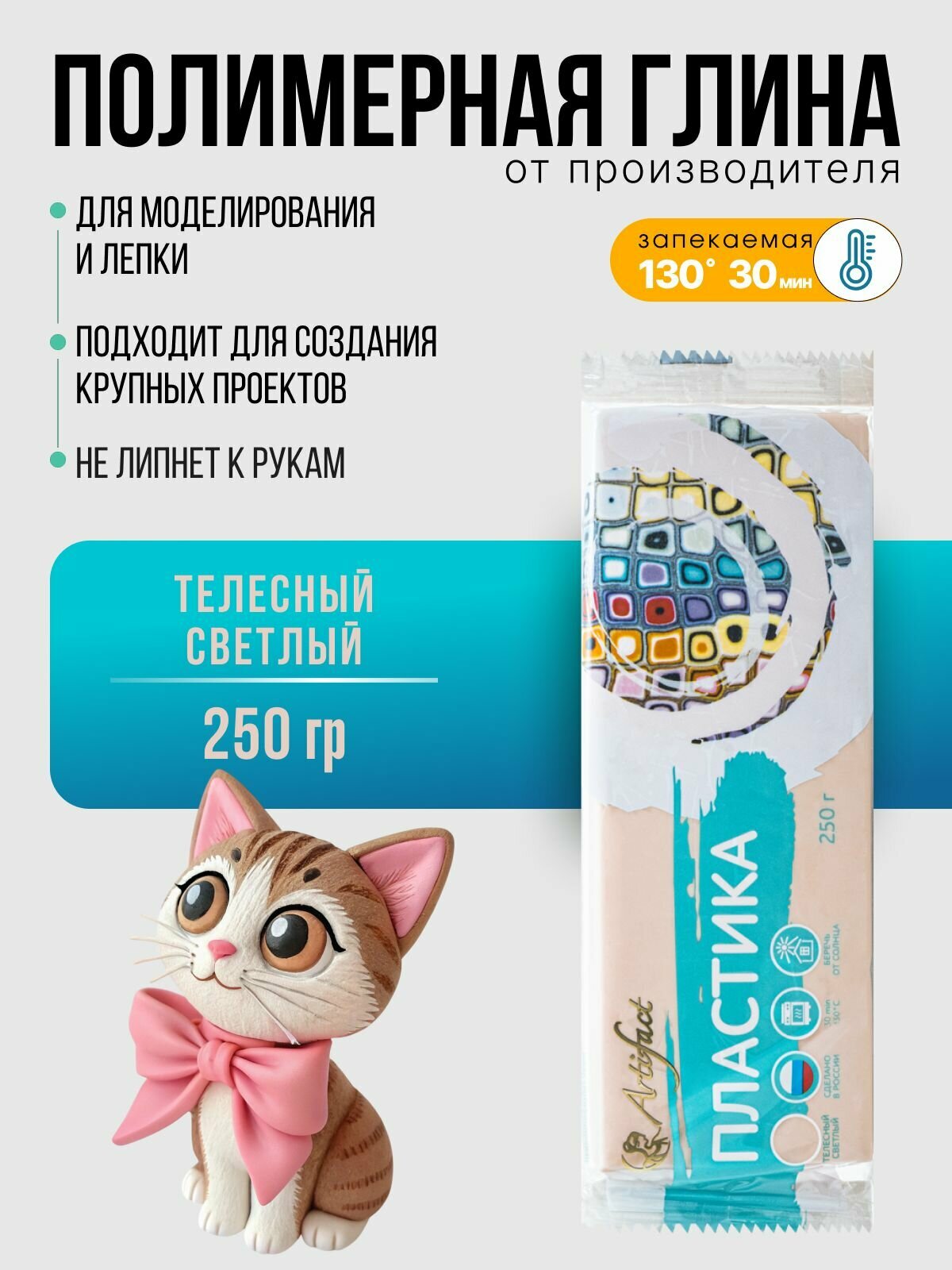 Ниже Вы можете прочитать отзывы на Полимерная глина телесная светлая, пластика запекаемая Артефакт, брус 250 г, ознакомится с подробными характеристиками, посмотреть интересные обзоры и фотографии на Полимерная глина телесная светлая, пластика запекаемая Артефакт, брус 250 г.