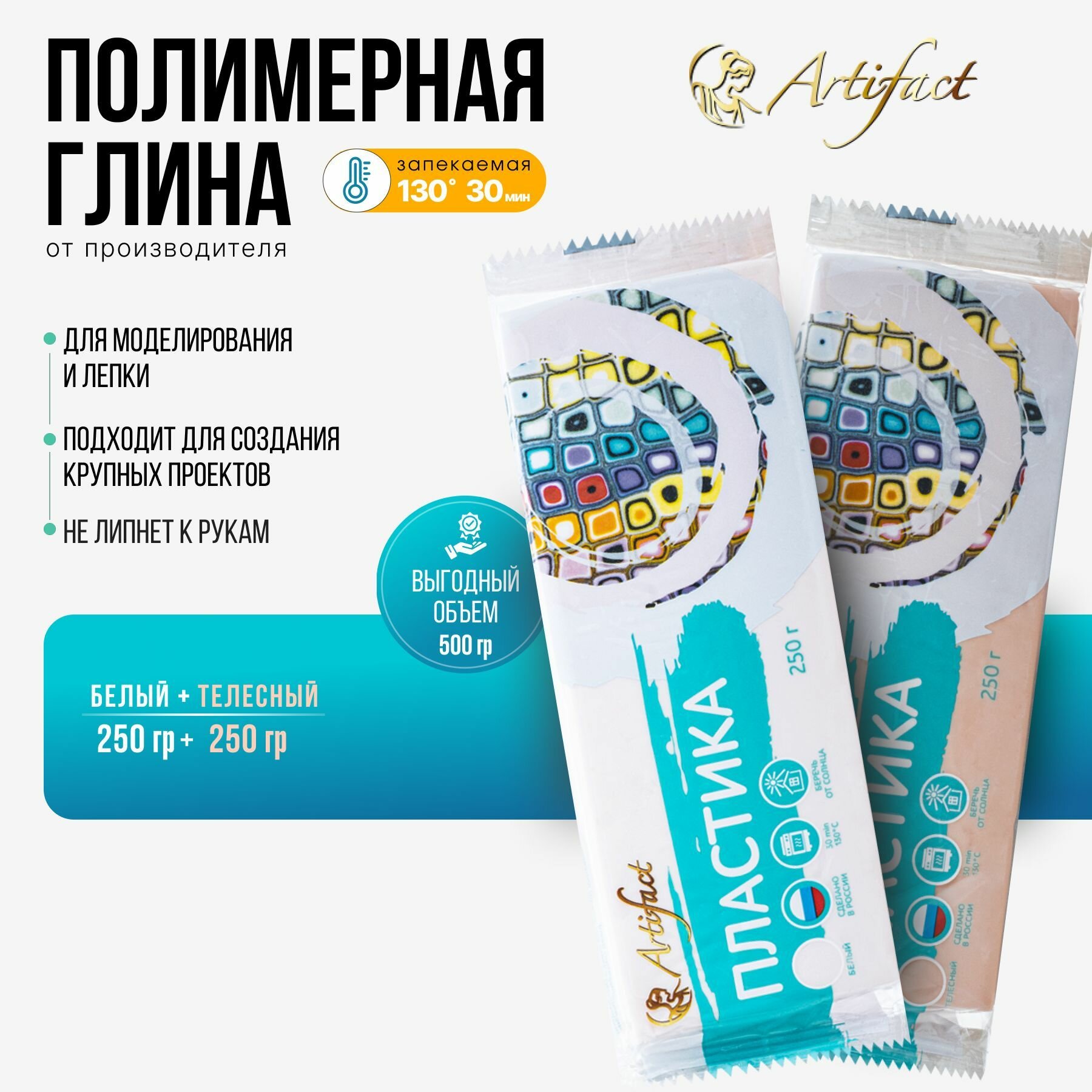 Купить Полимерная глина, пластика запекаемая, набор брусов 250гр, белый и телесный