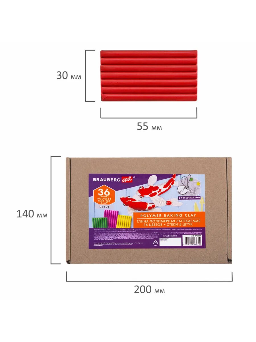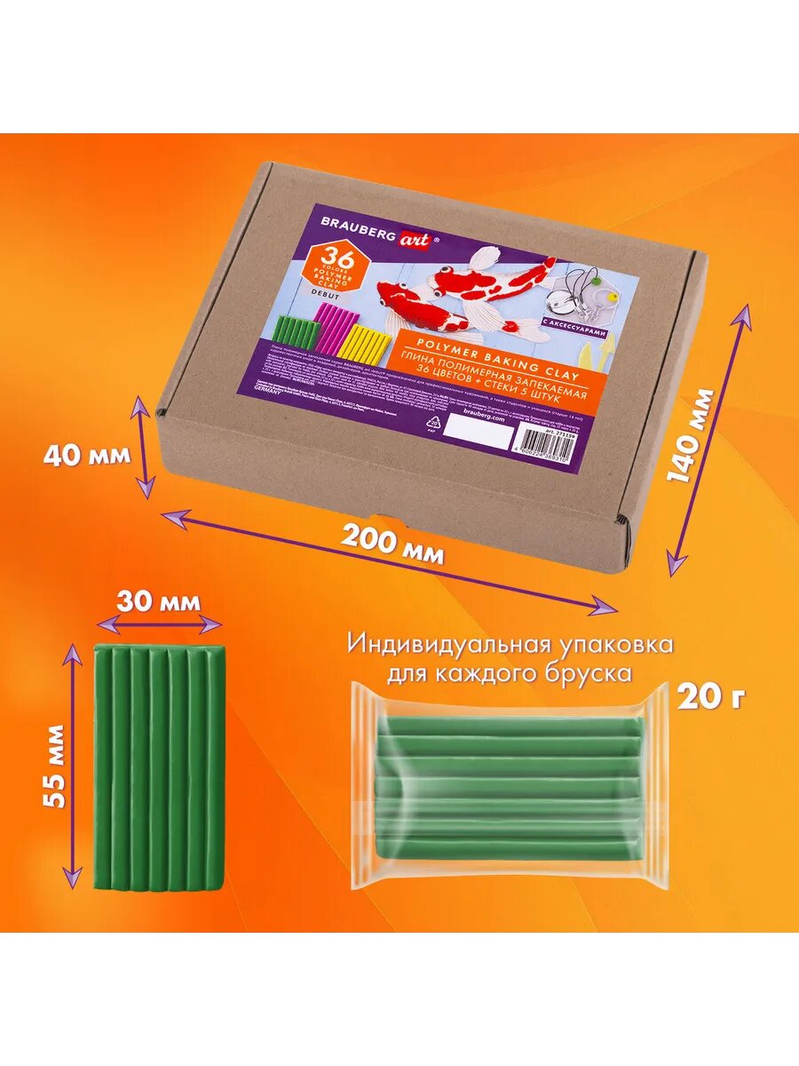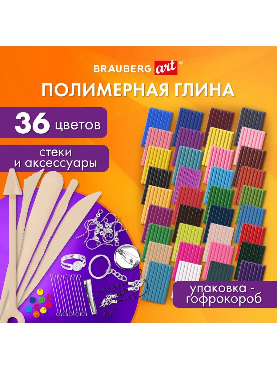 Глина полимерная запекаемая, набор 36 цветов по 20 г, с аксессуарами, в гофрокоробе, BRAUBERG, 271159