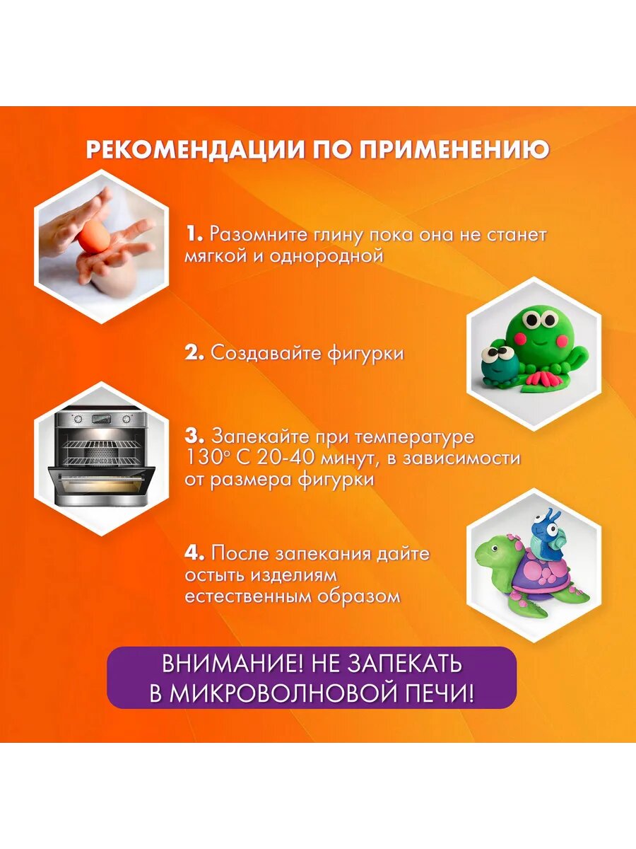 Глина полимерная запекаемая, набор для лепки, творчества и рукоделия, Набор 10 цветов по 20 г, с аксессуарами