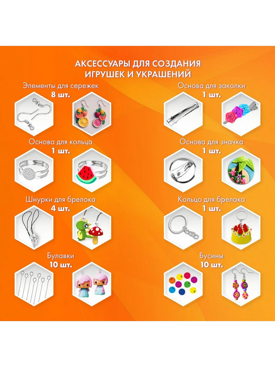 Глина полимерная запекаемая, набор для лепки, творчества и рукоделия, Набор 24 цветов по 20 г, с аксессуарами