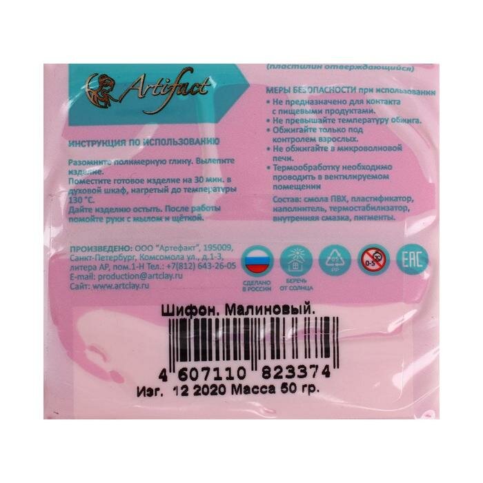 Купить Полимерная глина Артефакт с повышенной прочностью арт. АФ.823374 шифон цв. Малиновый 50 г