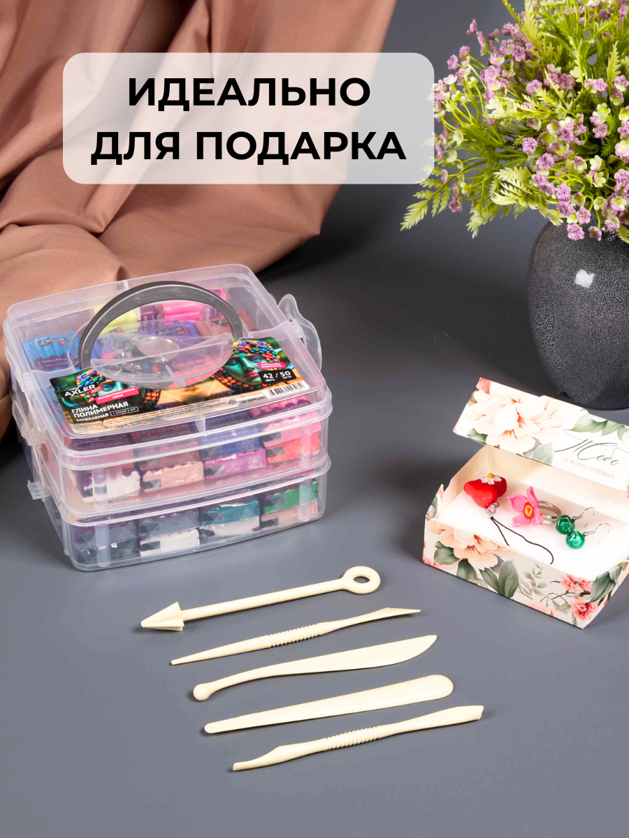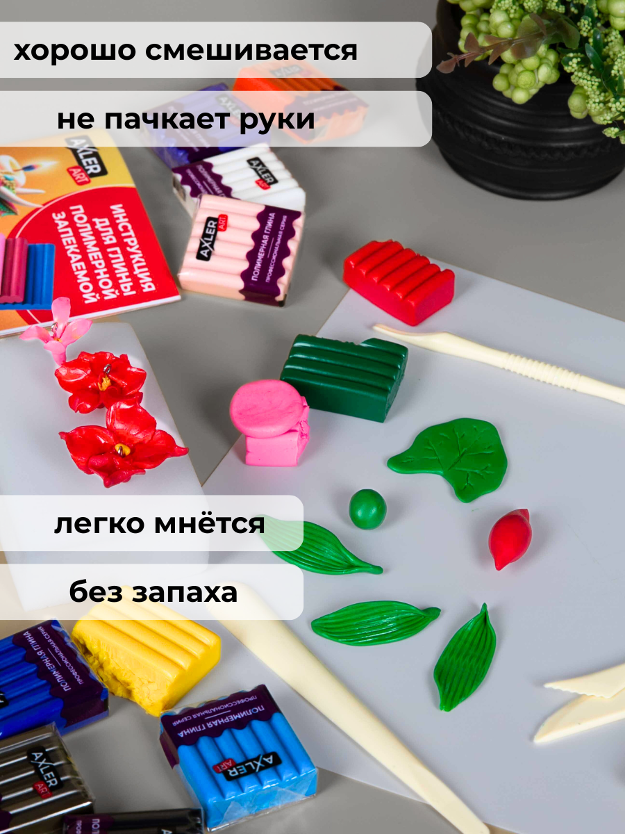 Полимерная глина запекаемая AXLER ART, цветная для лепки, набор для запекания, 42 цвета, 50 штук интересное: