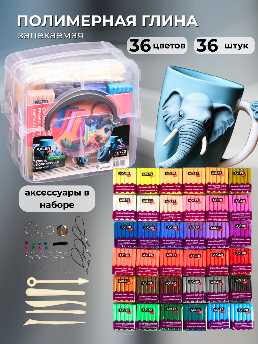 Купить Полимерная глина запекаемая AXLER ART, цветная для лепки, набор для запекания, 36 цветов