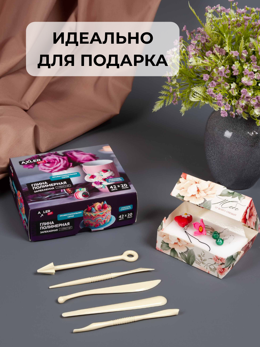 Полимерная глина запекаемая AXLER ART, цветная для лепки, набор для запекания, 42 цвета интересное: