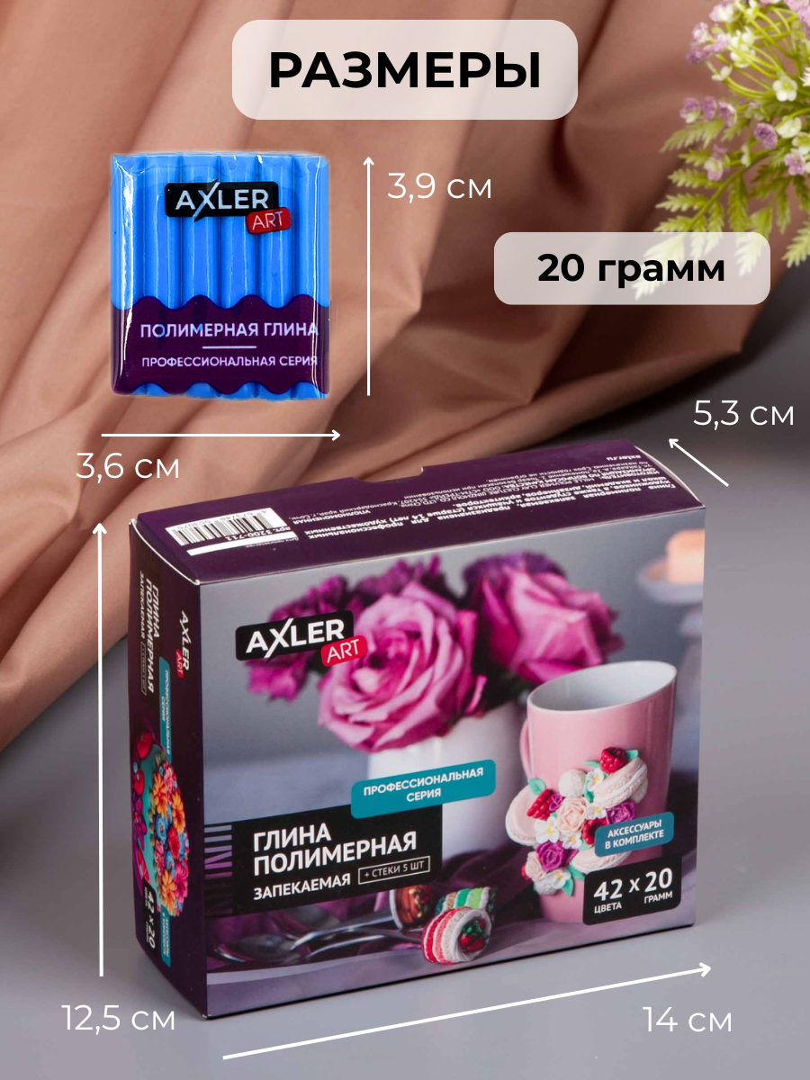 Купить Полимерная глина запекаемая AXLER ART, цветная для лепки, набор для запекания, 42 цвета
