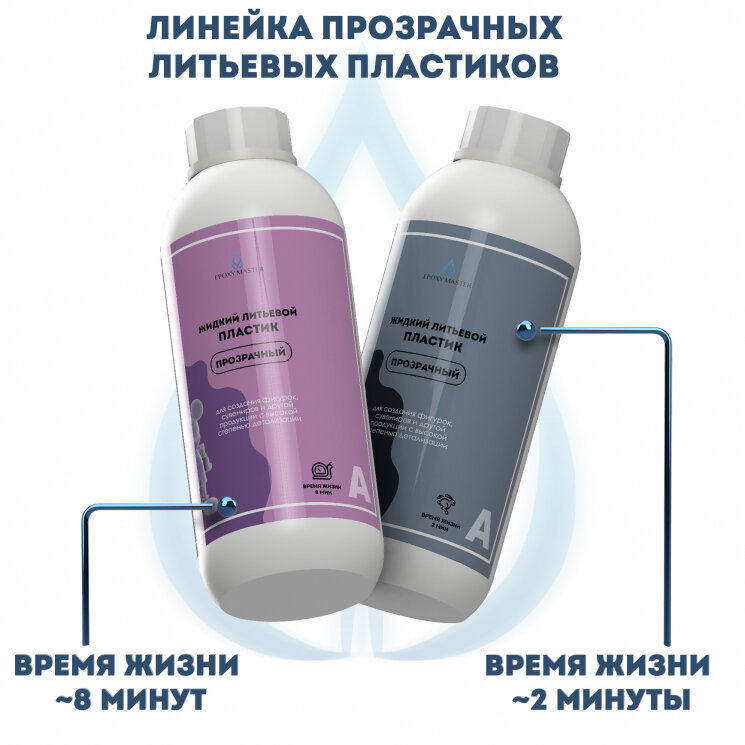 Жидкий пластик для творчества EpохyMaster ProPlast прозрачный, время жизни до 8 минут, объем 1 кг