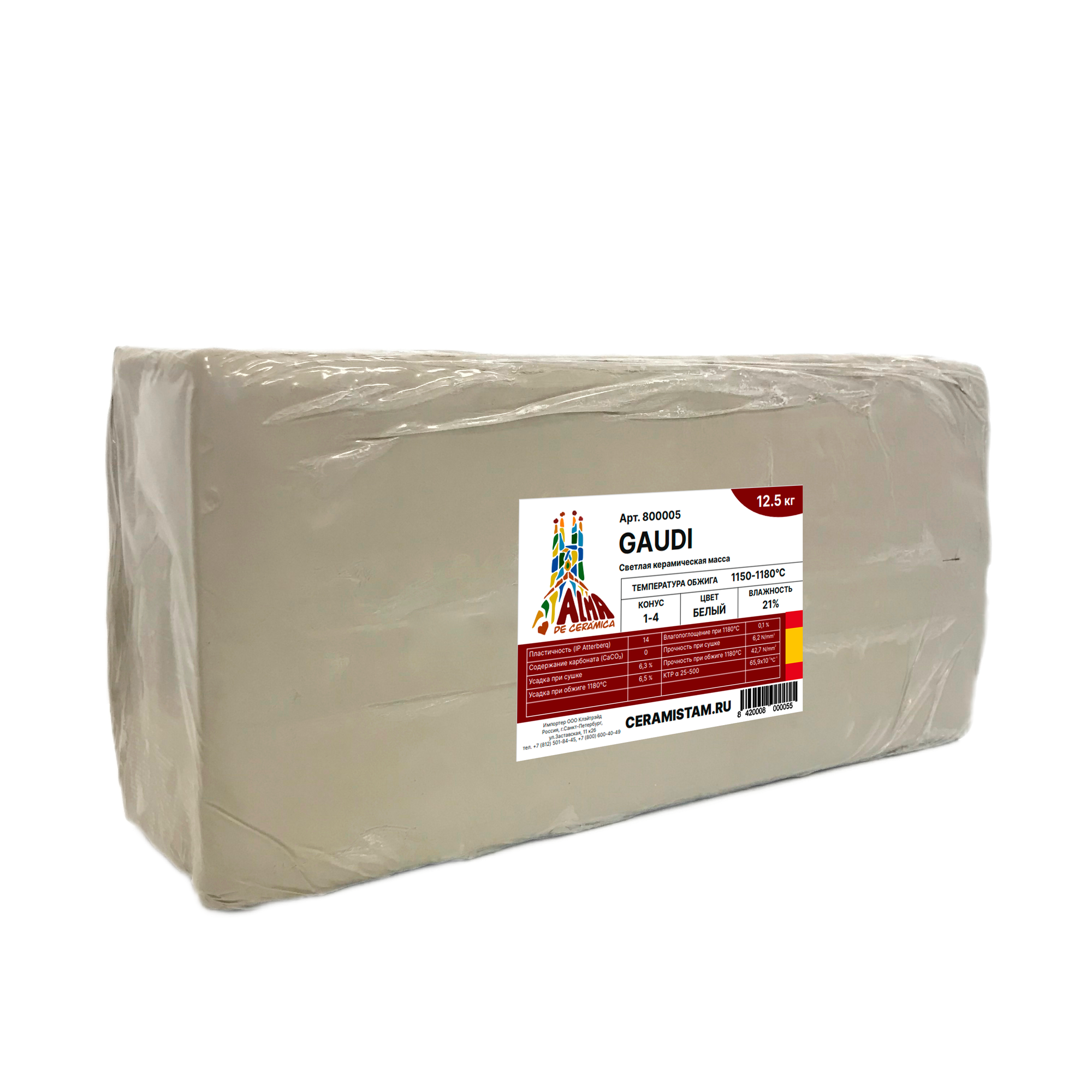 Глина GAUDI, Alma de Ceramica (12,5 кг), высокотемпературная белая керамическая масса (800005) интересное: