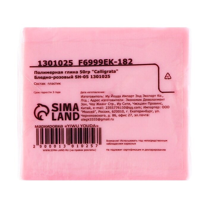 Полимерная глина Calligrata SH-05, 50 г, цвет бледно - розовый интересное: