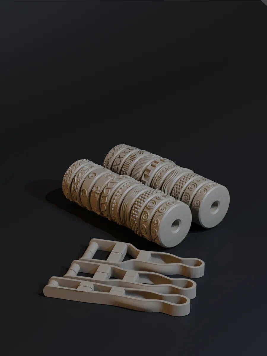 Купить 20 текстурных роликов для глины размером 40х11 мм. в комплекте с ручками