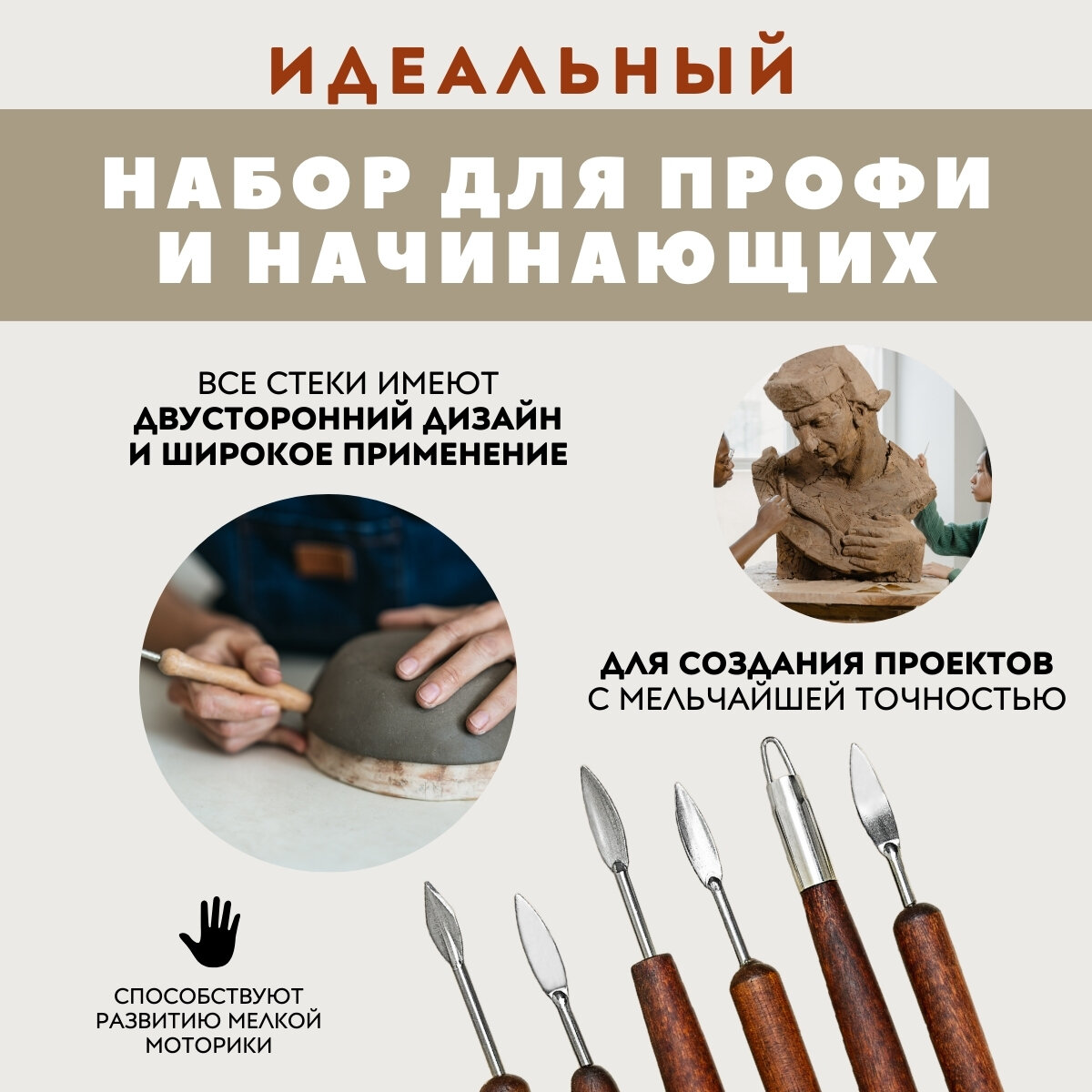 Купить Набор стеков, инструментов для лепки и работы с глиной, пластилином 6 штук