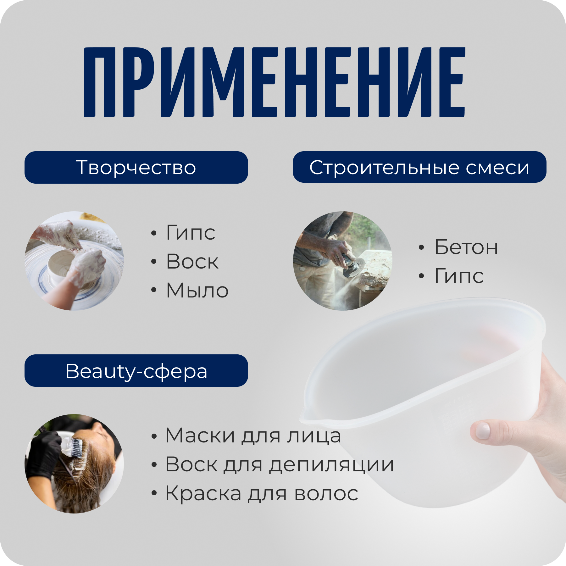 Ниже Вы можете прочитать отзывы на Чаша для смешивания гипса, краски, мерная, 1 л, силиконовая, Color Si, ознакомится с подробными характеристиками, посмотреть интересные обзоры и фотографии на Чаша для смешивания гипса, краски, мерная, 1 л, силиконовая, Color Si.