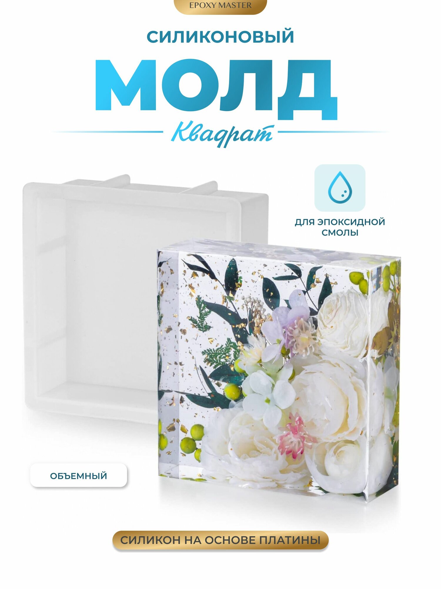 Купить Силиконовый молд для эпоксидной смолы EPOXYMASTER Объемный квадрат, 23х23см