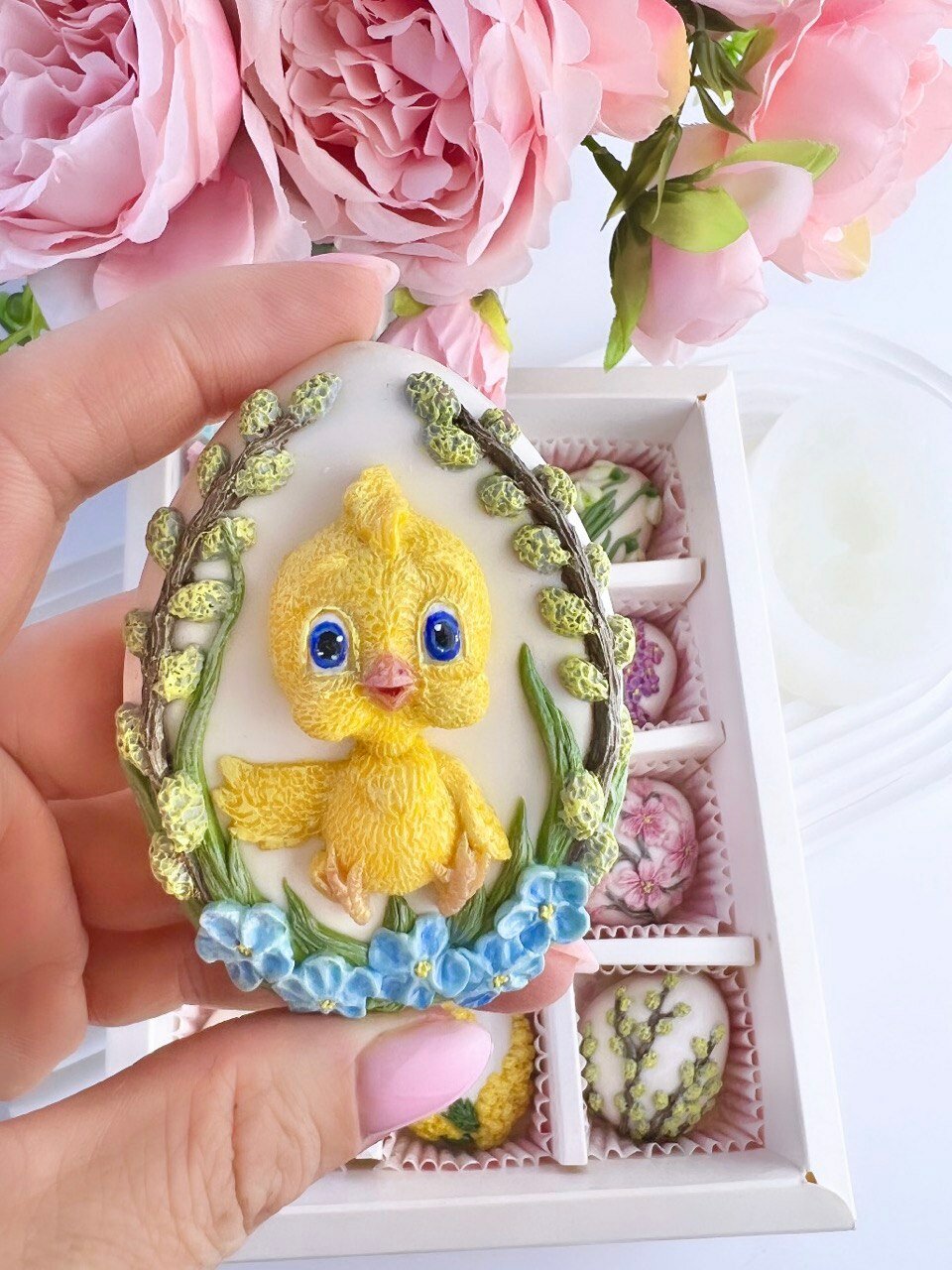Силиконовый 2D молд для шоколада, гипса и эпоксидной смолы "Цыпленок с вербой" интересное: